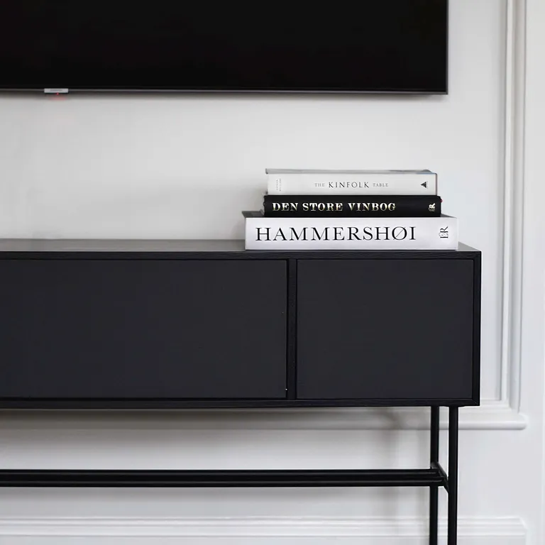 Alles, was Du brauchst, ist in das Möbel integriert – Du musst lediglich Strom und TV anschliessen und schon kannst Du mit vollem, großartigem Stereoklang loslegen. Einfacher und eleganter geht es nicht. Die Verarbeitung ist mit Echtholzfurnier und Textilfronten von Gabriel, Dänemark erstklassig (Stofftüren separat erhältlich).