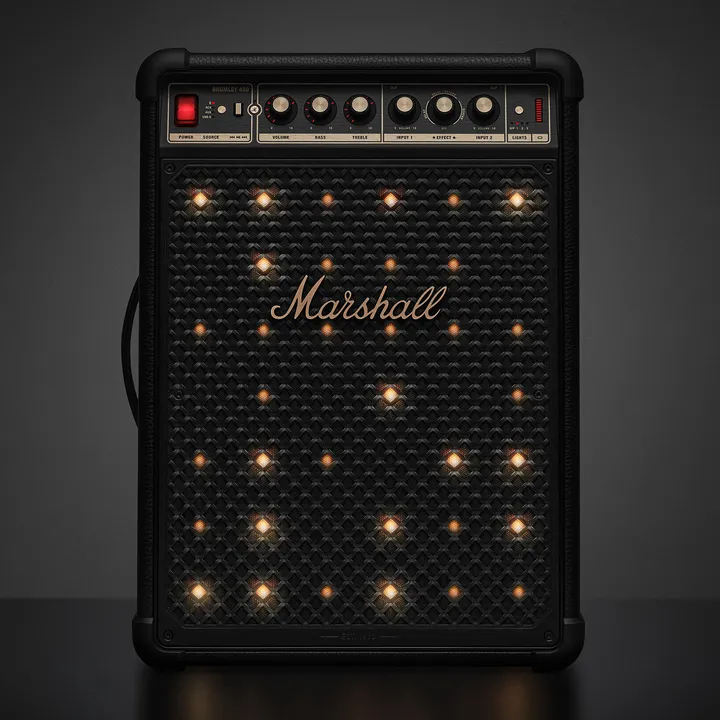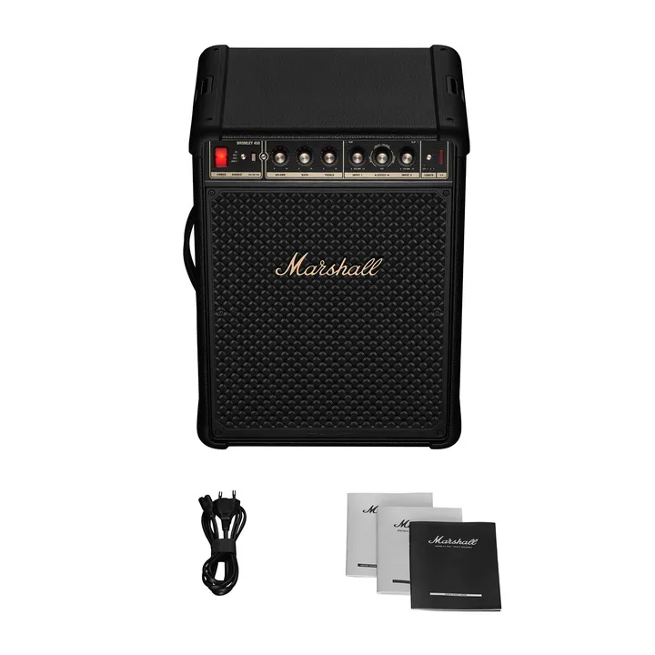 Startseite›Lautsprecher›Kabellose / Bluetooth Lautsprecher›MARBROMLEY450BKKabelloser Lautsprecher mit AkkuMarshall Bromley 450NeuZeige allesTechnische DatenVerbindungenAudioausgangMinijack/AUXAudioeingangAnalog RCA, Analog XLR, Minijack/AUXEingang (sonstige)USB-CLeistungLautsprecher-TypKabelloser LautsprecherFrequenzbereich (-6dB)40-20.000 HzFull Range Treiber2"Tieftönergröße6.5"Anzahl der Tieftöner2xIP-BewertungIP55ProduktdatenAkkuJaMax. Akkulaufzeit40Ladezeit3,5GehäusebauartPassive RadiatorTrennbares NetzkabelJaBluetooth-Typ5.2Bluetooth technologyAuracastEnergieStandby-Stromverbrauch0,3 wattMaße und DesignFarbeSchwarzGewicht (kg)12,32Breite (cm)36,6Höhe (cm)49,2Tiefe (cm)26,1Höhe der Verpackung (cm)58,2Länge der Verpackung (cm)46,4Gewicht der Verpackung (kg)16,5Breite der Verpackung (cm)32,5Maße (Produkt)49,2 x 36,6 x 26,1 cm (höhe x breite x tiefe)Kostenlose DemonstrationBrauchst Du Hilfe?Frag einen unserer leidenschaftlichen HiFi-Experten oder kontaktiere den Kundenservice.Hilfe erhaltenZubehör für Marshall Bromley 450Mehrere VariantenEssentials Classic RCA (0.75 Meter)Signalkabel35 € / Set345Mehrere VariantenEssentials Classic Minijack (0.5 Meter)Minijack-Kabel20 €33Empfohlene AlternativenMarshall Bromley 750 (Schwarz)Kabelloser Lautsprecher mit Akku999 €7SOUNDBOKS 4 (USB-C) (Schwarz)Kabelloser Lautsprecher mit Akku999 €105
