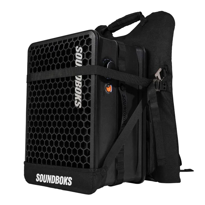 15 anzeigenSchnall Dir Deine SOUNDBOKS auf den Rücken und nimm die Party überallhin mit. Dieses speziell entwickelte Rücken-Tragegestell macht es einfach, fetten Sound zu Fuß zu transportieren.Mehr erfahrenSOUNDBOKS Mix Kabelloser Lautsprecher mit Akku