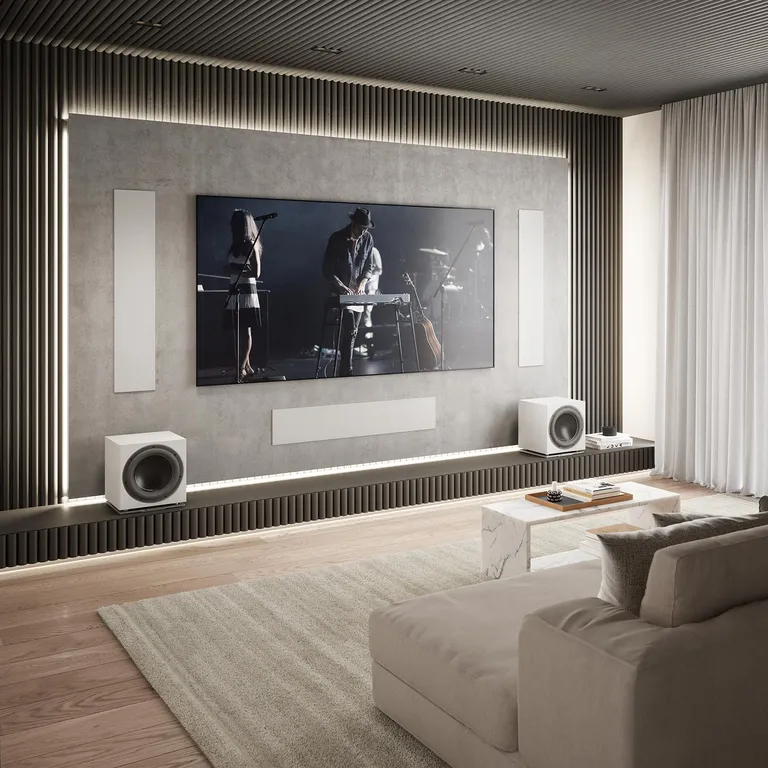 Du erhältst satte Bässe, viel Dynamik und ein wunderbar detailliertes und naturgetreues Klangbild, genau wie bei einem guten traditionellen Lautsprechersystem. Der einzige Unterschied besteht darin, dass alles in der Wand untergebracht ist, so dass die Inneneinrichtung unbeeinflusst bleibt. Die Montage ist dank des superflachen, geschlossenen Gehäuses und der cleveren "Dogleg"-Halterungen erstaunlich einfach.