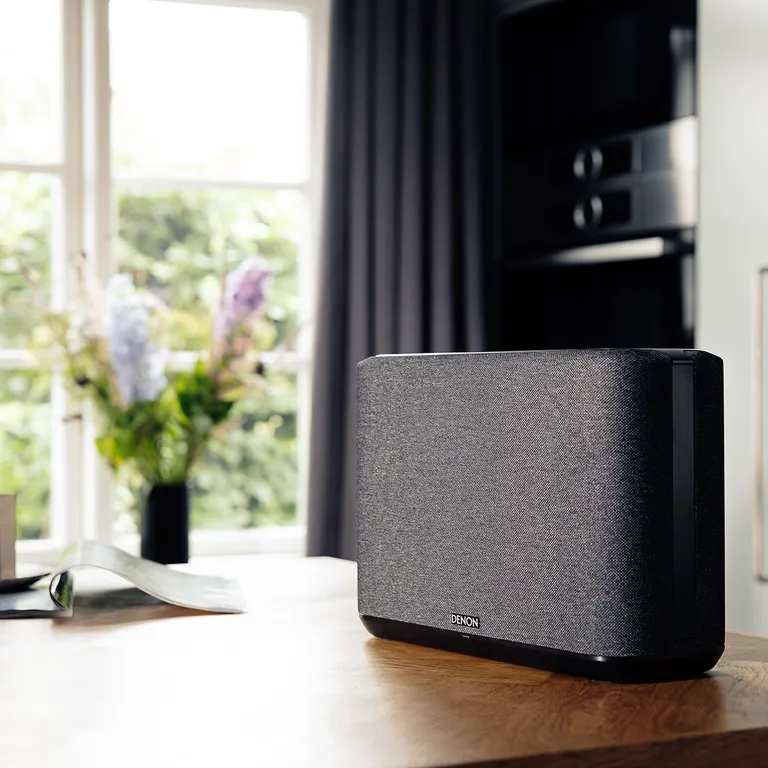 Denon Home 250 ist diskreter und handlicher als eine herkömmliche Minianlage mit separaten Lautsprechern. Das exklusive Finish in hellem oder dunklem Textil macht es einfach, einen Aufstellort zu finden, der dem Lautsprecher und Deiner Einrichtung gerecht wird.