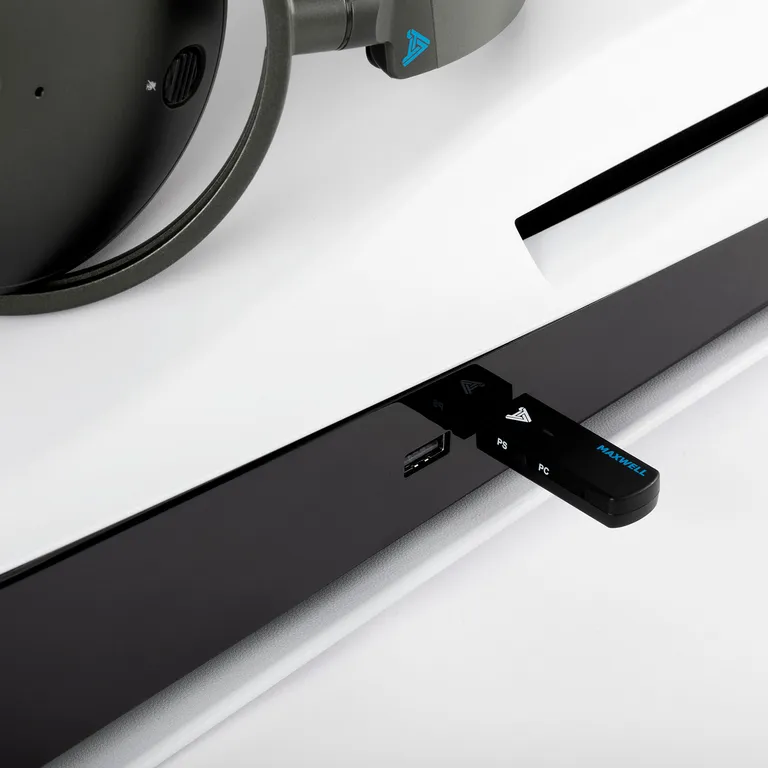 Zusammen mit dem Audeze Maxwell erhältst Du einen kleinen Wi-Fi-Dongle, den Du in einen USB-C Anschluss an Deinem Computer bzw. der Spielekonsole steckst. So hast Du kabelloses Audio in hoher Qualität direkt im Ohr. Dank Ultra Low Latency laufen Bild und Ton immer völlig synchron, genau wie beim Hören über Kabel. Hier gibt es keine Kompromisse, selbst wenn Du kabellos unterwegs bist!