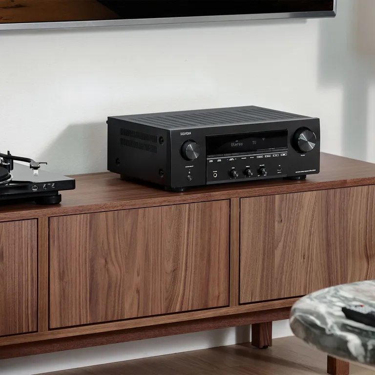 Wenn Du Dich für einen Denon DRA-900H entscheidest, fließt Deine Investition in die Klangqualität und nicht in all die Dinge, die Du nicht benötigst, wenn Du mit gutem Sound in zwei Kanälen zufrieden bist. Auch die Einrichtung und der tägliche Betrieb sind viel einfacher. Schließe einfach zwei Lautsprecher an, und schon spielt das System!