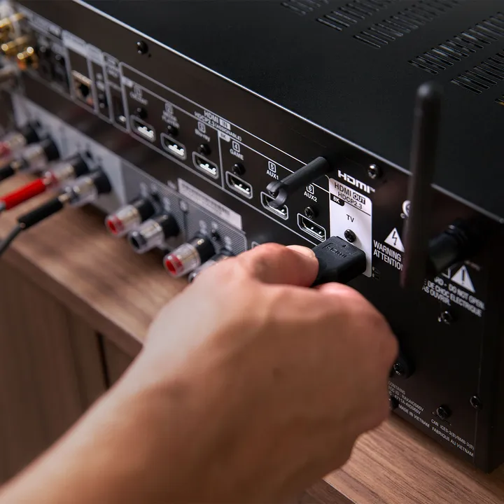 Beim DRA-900H kannst Du das Audio Deines Fernsehers in optimaler digitaler Qualität über HDMI anschließen und die Lautstärke und weiteres über Deine vorhandene TV-Fernbedienung steuern. Dank Audio Return Channel/eARC kannst Du sogar den Ton vom TV in optimaler Qualität über dasselbe HDMI-Kabel zurück an den Receiver senden. Das System schaltet sich automatisch mit dem Fernseher ein und aus, sodass Du Dir im Alltag keine Gedanken über die Steuerung machen musst. Viel einfacher und eleganter geht es nicht.