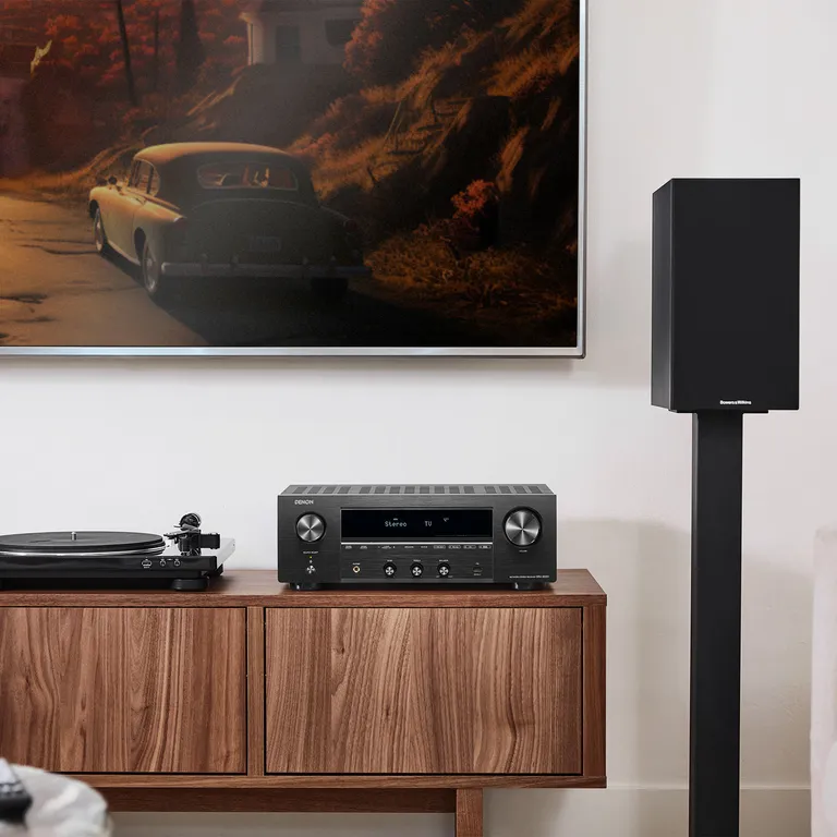 Die Vorderseite und der große Lautstärkeregler sind wunderschön aus Aluminium gefertigt, und wenn Du noch eine CD-Sammlung hast, kannst Du einen der passenden CD-Player von Denon hinzufügen. Hier erhältst Du einen Plattenspieler-Eingang, ein integriertes DAB/FM-Radio, kabelloses HEOS Musikstreaming mit Multiroom-Funktion – kurzum, alles, was Du für ein hochwertiges Full Size System benötigst.