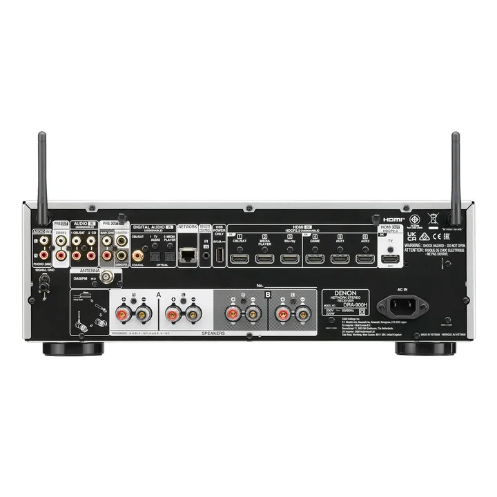 Neben HEOS (das die meisten Streaming-Anforderungen, einschließlich Internetradio, erfüllen kann) verfügt der DRA-900H auch über eine integrierte drahtlose Netzwerkfunktion (Wi-Fi). Dazu ist Apple AirPlay 2 an Bord, das erweiterte Multiroom-Funktionen mit allen AirPlay 2-Funklautsprechern über Dein iPhone/iPad bietet. Die Technologie ist Teil des Apple iOS-Betriebssystems, sodass praktisch jede App, die Audiodaten wiedergeben kann – einschließlich YouTube und Netflix – diese direkt an Lautsprecher und Systeme mit AirPlay 2 übertragen kann. Über AirPlay 2 kannst Du am Denon DRA-900H auch Siri zur Sprachsteuerung nutzen.