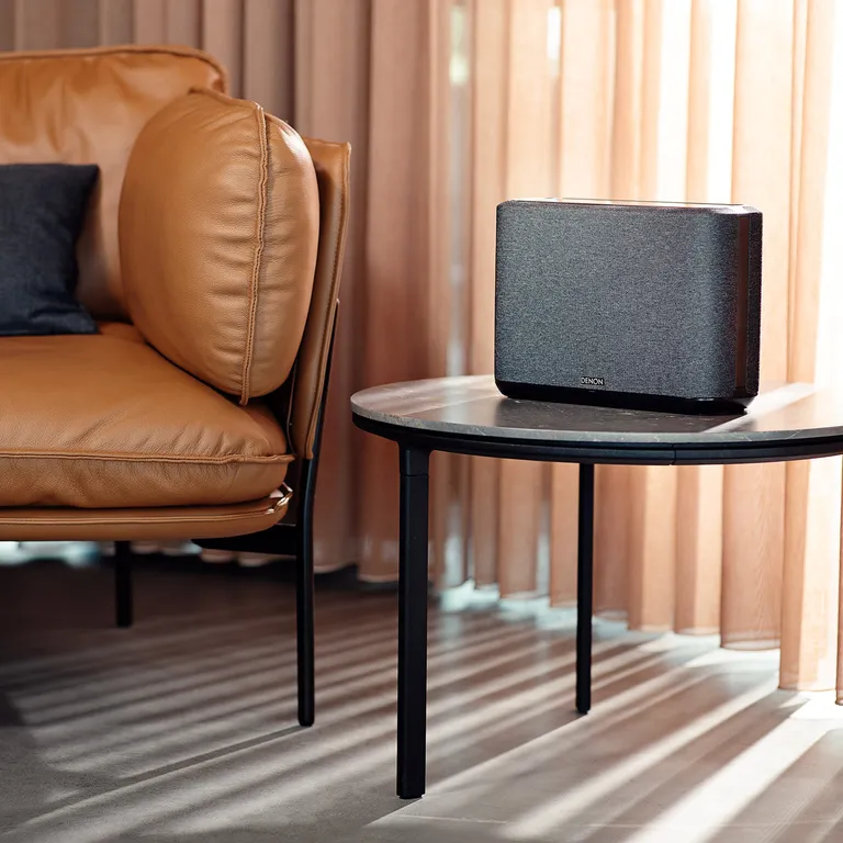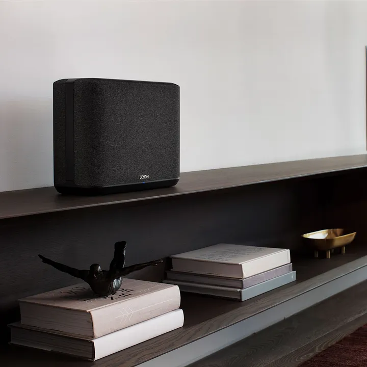 Denon Home 250 ist diskreter und handlicher als eine herkömmliche Minianlage mit separaten Lautsprechern. Das exklusive Finish in hellem oder dunklem Textil macht es einfach, einen Aufstellort zu finden, der dem Lautsprecher und Deiner Einrichtung gerecht wird.
