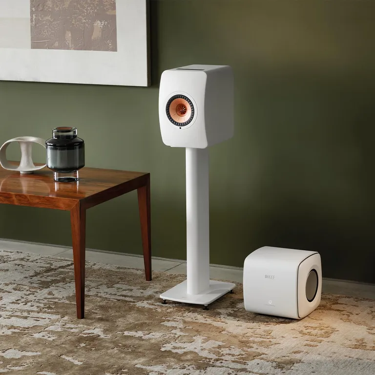 KEF KC62 ist in verschiedenen Farben erhältlich. Ein kabelloser Adapter für die Verwendung mit den KEF Aktivlautsprechern ist als Zubehör erhältlich.
