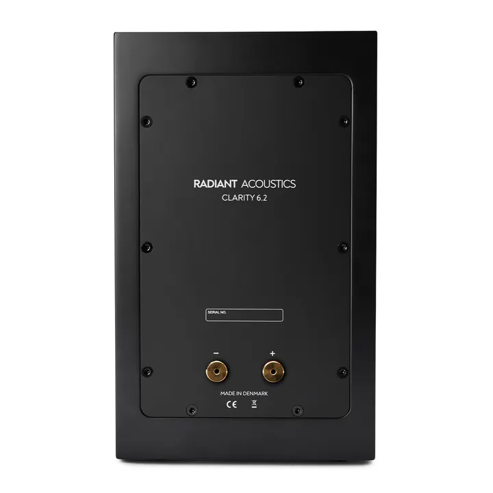 Der Air Motion Transformer (AMT) Hochtöner in Clarity 6.2 verfügt über eine ultradünne, gefaltete Kapton-Membran mit einer für einen Hochtöner extrem großen Oberfläche. Der Hochtöner ist eine Sonderanfertigung der Lautsprecherspezialisten von DALI, der Schwesterfirma von Radiant Acoustics, die einen Großteil der Einheiten-Technologie von den extrem teuren Steinway-Lyngdorf-Lautsprechersystemen übernommen hat. Das Doppelmagnetsystem ist dabei sogar ein zusätzliches Upgrade, das speziell für Radiant Acoustics entwickelt wurde.
