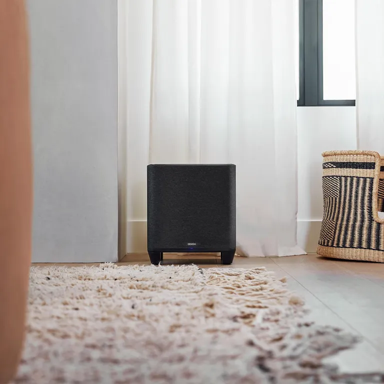 Der Denon Home Subwoofer ist ein eleganter und einfach zu bedienender, kabelloser Subwoofer, der tiefe, dynamische Bässe für Deinen Filmsoundtrack und Deine Musik liefert. Mit seiner eleganten mattschwarzen sowie textilen Oberfläche ist er der perfekte Partner für die smarte Denon Home Sound Bar 550 und die kabellosen Denon Home Series-Lautsprecher, lässt sich aber auch ebenso mit einer Reihe anderer Denon-Produkte mit integriertem HEOS verwenden.
