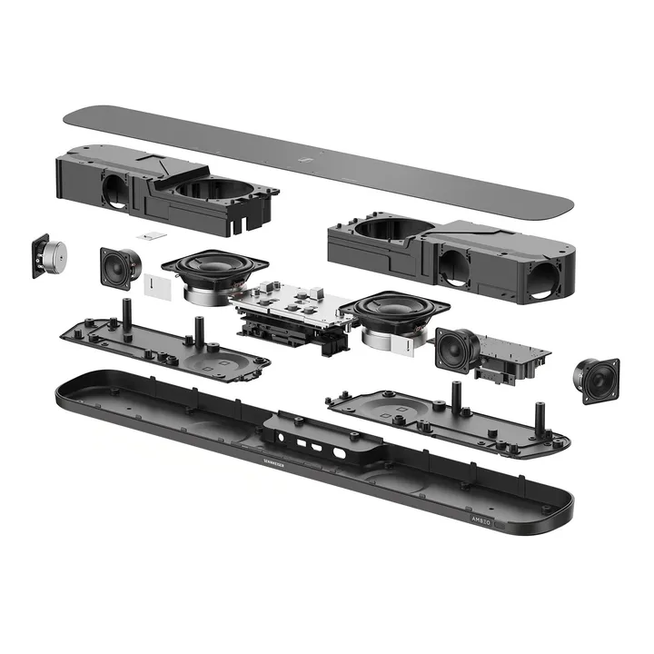Die AMBEO Soundbar Mini ist mit vier eingebauten Kalibrierungsmikrofonen ausgestattet, die zur Messung des Hörraums verwendet werden. Wenn Du die Soundbar neben dem Fernseher aufstellst, misst das System innerhalb weniger Minuten die Reflexionen von den Wänden und der Decke und optimiert den Klang für den Raum. Das ist der Grund, warum die AMBEO Soundbar Mini einen weitaus überzeugenderen Surround-Sound liefert als die meisten anderen Soundbars.