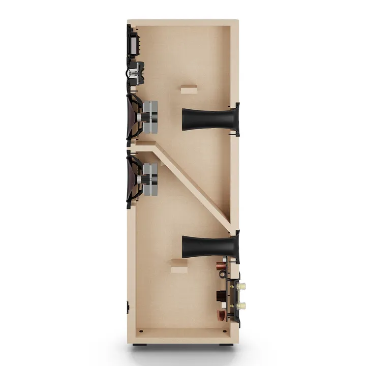 Im Inneren ist das Gehäuse der Standmodelle in separate Kammern unterteilt, um Druckunterschiede zwischen den Lautsprechern bei gleichem Volumen zu vermeiden und stehende Wellen im Inneren des Gehäuses zu minimieren. So können die Einheiten individuell eingestellt werden, ohne sich gegenseitig zu beeinflussen. Wie bei EPIKORE hat jede Kammer ihre eigene, brandneue "Continuous Flare"-Reflexöffnung, die völlig ohne gerade Linien auskommt. Dies optimiert den Luftstrom, macht den Anschluss linearer und eliminiert Resonanzen und Anschlussgeräusche. Alles Dinge, die zu einer deutlich saubereren Basswiedergabe beitragen.