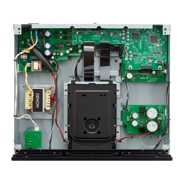 Der DCD-1700NE ist so konzipiert, dass alle mechanischen und elektrischen Störungen eliminiert werden. Das exklusive S.V.H.-Laufwerk (SupPress Vibration Hybrid) stellt Denon selber her, und eine Kombination verschiedener Materialien wird verwendet, um sowohl die mechanische Stabilität als auch die Genauigkeit der Signalerfassung zu optimieren.
