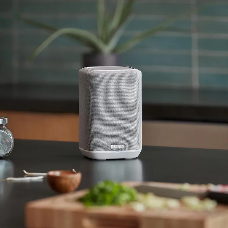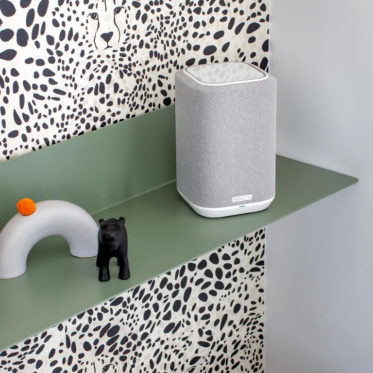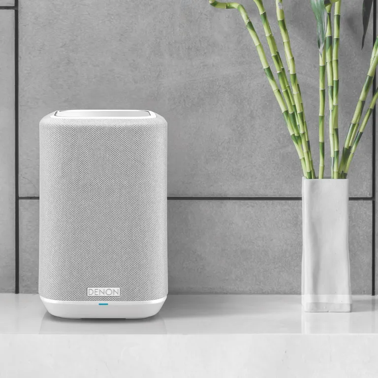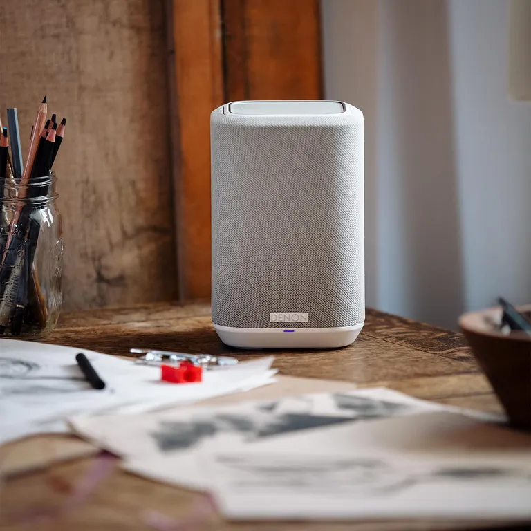 Denon Home 150 – superkompakter kabelloser Lautsprecher mit gutem Sound, HEOS Multiroom, Bluetooth und einfacher Bedienung in feiner Textilausführung