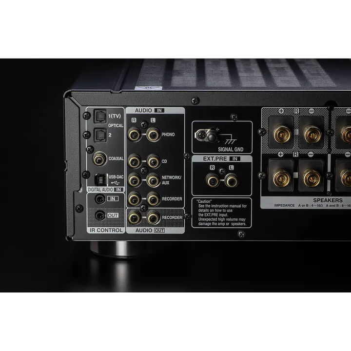 - Doppelte Lautsprecheranschlüsse für Bi-Wiring oder zwei Lautsprechergruppen