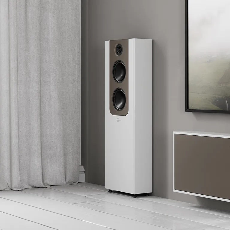 Der Soft-Dome-Hochtöner wurde aufgrund seines geringen Gewichts und seiner linearen Wiedergabe ausgewählt, was zu einer hervorragenden Auflösung und Musikalität des Klangs beiträgt. Sowohl der Hochtöner als auch der Tief-/Mitteltöner sind im Vergleich zu den Versionen in den flachen Wandlautsprechern von Lyngdorf stark verbessert worden. Dadurch wird sichergestellt, dass sie den Anforderungen eines Full-Range-Standlautsprechers, der selbst hohe Schalldruckpegel erzeugen muss, voll gerecht werden.
