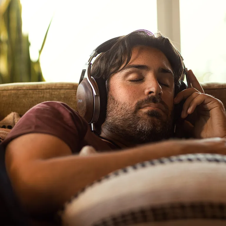 Die atmungsaktiven Ohrpolster sind mit einem extrem weichen und komfortablen Kunstleder bezogen. Dieses Material wurde nicht aus Kostengründen ausgewählt, sondern weil es noch bessere Eigenschaften als das Naturprodukt besitzt. Die Polster sind mit einem Memory-Schaum gefüllt, der sich an die Kopfform anpasst und größtmöglichen Tragekomfort garantiert. Die Hörmuscheln hängen in Denons patentiertem Kugel-Drehgelenk, das sich an Größe und Form des Kopfes anpasst.