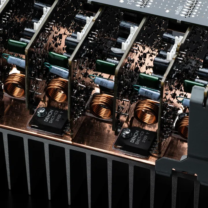 Denon Surround-Receiver sind für ihre hohe Klangqualität und Zuverlässigkeit bekannt - und das aus gutem Grund. Der grundlegende Aufbau der Leistungssektion basiert auf bewährten analogen Prinzipien, und die Netzteile, Komponenten und das Leiterplattenlayout wurden über viele Modellgenerationen hinweg getestet, verfeinert und erweitert.