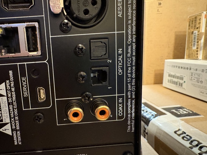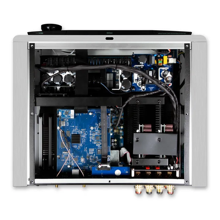 Es finden sich auch zwei optische, zwei koaxiale und ein symmetrischer AES/EBU-Digitaleingang sowie eine USB-A-Verbindung für Musik von einem USB-Stick oder einer Festplatte. Natürlich verfügt der M33 auch über einen HDMI-Anschluss, der eARC unterstützt. Auf diese Weise kannst Du den Verstärker mit einem einzigen HDMI-Kabel an Dein TV-Gerät anschließen, ihn automatisch ein- und ausschalten und den Ton mit der Fernbedienung des Fernsehgeräts steuern. Du kannst sogar den Fernsehbildschirm verwenden, um Albumcover der Musik anzusehen, die Du gerade hörst !