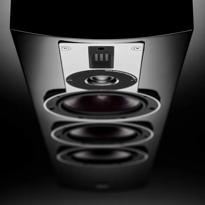 Der RUBICON 8 ist in der DALI Terminologie eine 2 1/2 + 1/2 +1/2-Wege-Konstruktion mit einem auf zwei 165 mm-Einheiten verteilten Bassbereich, wobei das untere Chassis eine etwas tiefere Frequenz darstellt als das obere. Den Mitteltonbereich übernimmt der obere 165 mm-Treiber. Zugleich liefert das exklusive Dome-Bändchen-Hochtönermodul ein souverän aufgelöstes und völlig aggressionsfreies Klangbild. Dieses gewährleistet eine optimale Klangverteilung, auch wenn du nicht genau mittig zwischen den Lautsprechern sitzt.