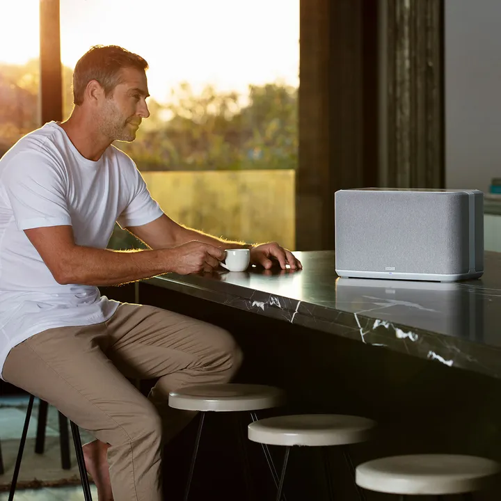 Obwohl Denon Home 350 Platz im Regal beansprucht, ist er dennoch weitaus diskreter und handlicher als eine herkömmliche Stereoanlage mit separaten Lautsprechern. Das exklusive Finish in hellem oder dunklem Textil macht es einfach, einen Aufstellort zu finden, der dem Lautsprecher und Deiner Einrichtung gerecht wird.