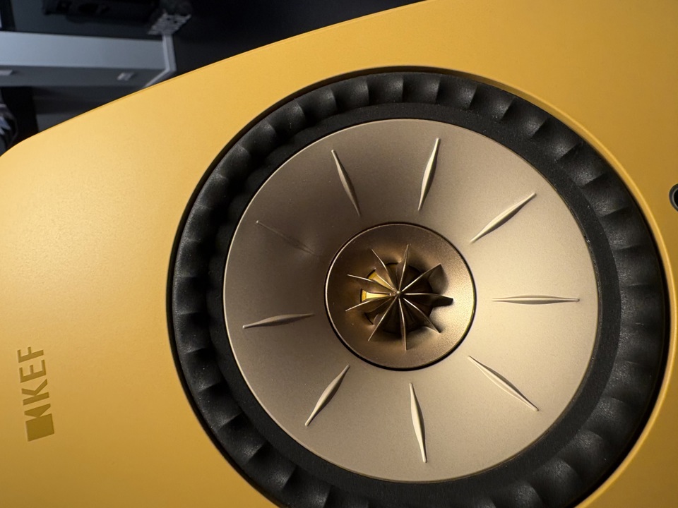 Der auffällige Uni-Q-Koaxial-Tief-/Mitteltöner ist ein KEF-Klassiker, der seit den 1990er Jahren über viele Lautsprechergenerationen hinweg verfeinert wurde. Hier ist der Hochtöner genau in der Mitte der Einheit platziert und nicht separat wie bei den meisten traditionellen Lautsprechern, was die begehrte "Single-Point"-Charakteristik ergibt, bei der alle Frequenzen ohne gegenseitiges Phasing-out von demselben Punkt kommen.