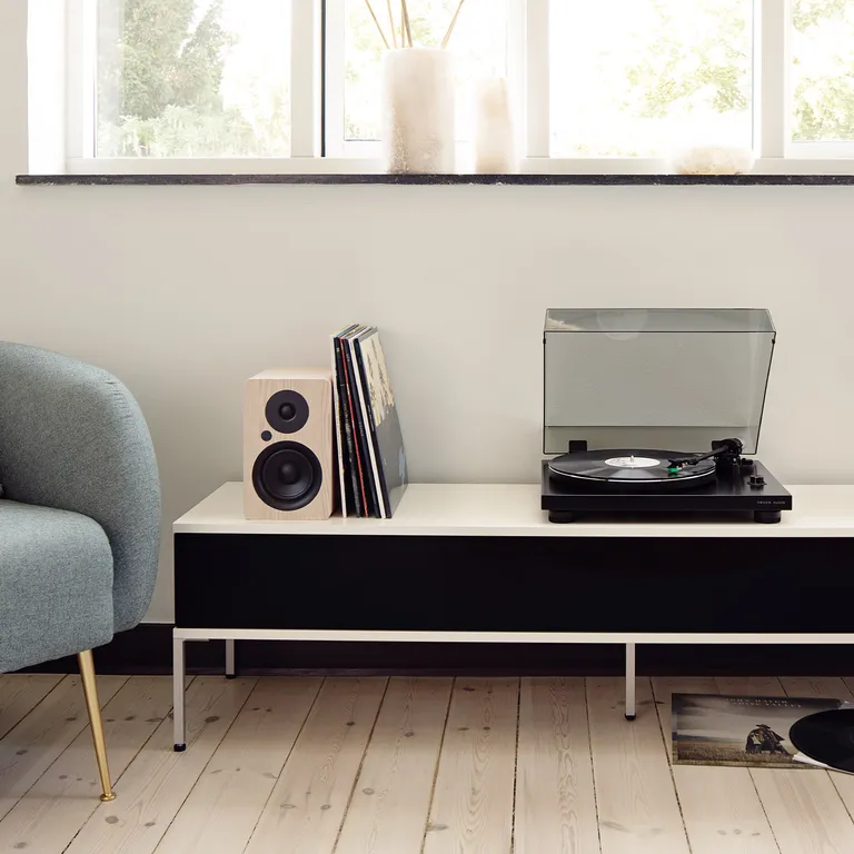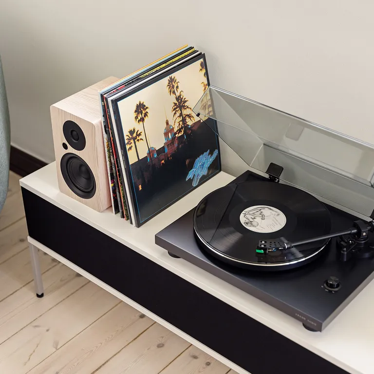 Ab Werk ist ein gut klingender Ortofon OM5e Pickup eingebaut, sodass Du sofort loslegen kannst. Wenn die Nadel einmal abgenutzt ist, kannst Du einen neuen Nadeleinsatz separat kaufen und musst nicht den ganzen Tonabnehmer austauschen.
