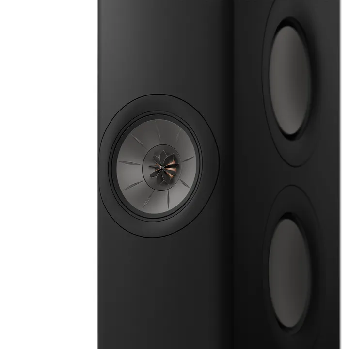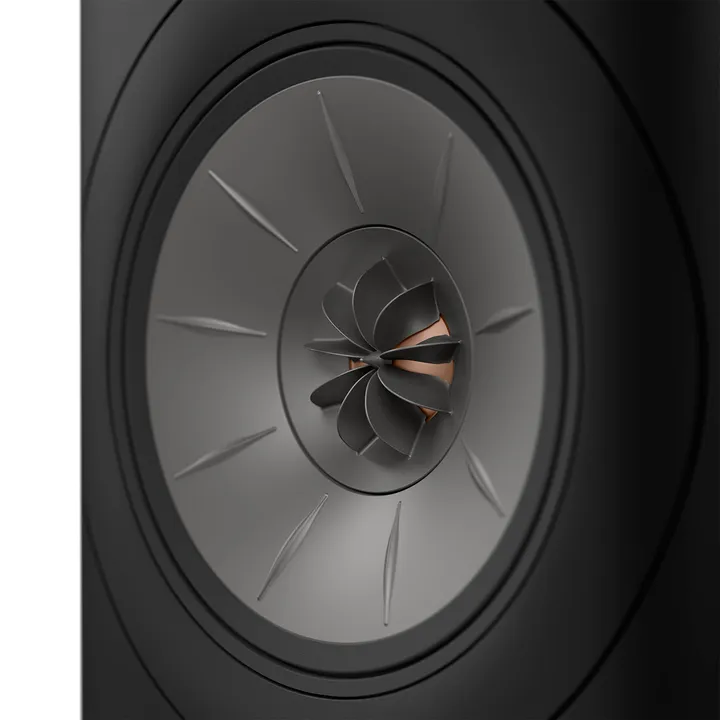 Der auffällige Uni-Q-Koaxial-Tief-/Mitteltöner ist ein KEF-Klassiker, der seit den 1990er Jahren über viele Lautsprechergenerationen hinweg verfeinert wurde. Hier ist der Hochtöner genau in der Mitte der Einheit platziert und nicht separat wie bei den meisten traditionellen Lautsprechern, was die begehrte "Single-Point"-Charakteristik ergibt, bei der alle Frequenzen ohne gegenseitiges Phasing-out von demselben Punkt kommen.