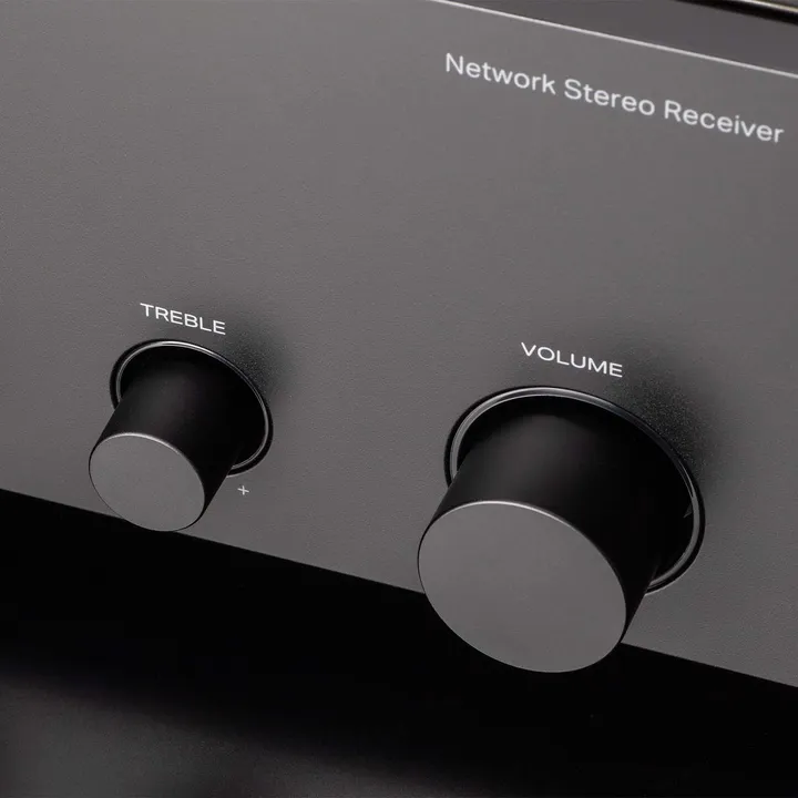 STEREO 70s ist ein exklusiver, fortschrittlicher und schön gestalteter HiFi-Stereo-Receiver, der nur wenig Platz benötigt und Dir alles bietet, was Du für Deine Musik benötigst, einschließlich integriertem Radio mit DAB und UKW. Du erhältst die großartige Klangqualität, die Du von einer herkömmlichen Stereoanlage über die gesamte Breite erwarten, und darüber hinaus eine Vielzahl smarter Funktionen. Mit einer Höhe von nur 11 cm steht STEREO 70s kompakt und elegant in Deinem Regal.
