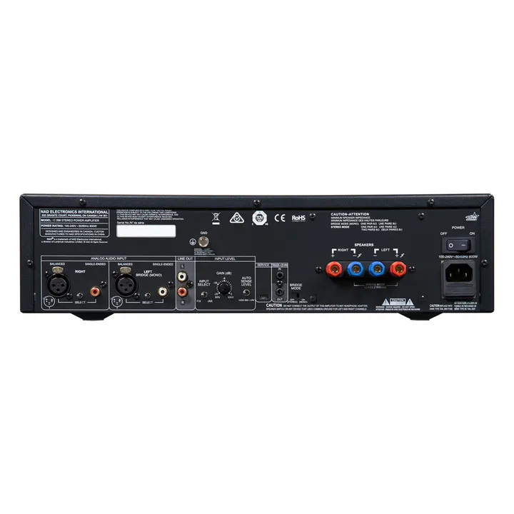 Der NAD C 298 kann über einen Schalter auf der Rückseite zur Mono-Leistungsstufe geschaltet werden. In dieser Einstellung stehen massive 620 Watt an 8 Ohm zur Verfügung. Wohlbemerkt 620 Watt – in kompromissloser High-End-Qualität!
