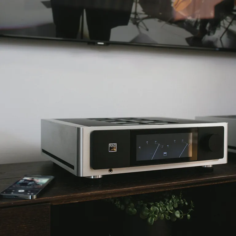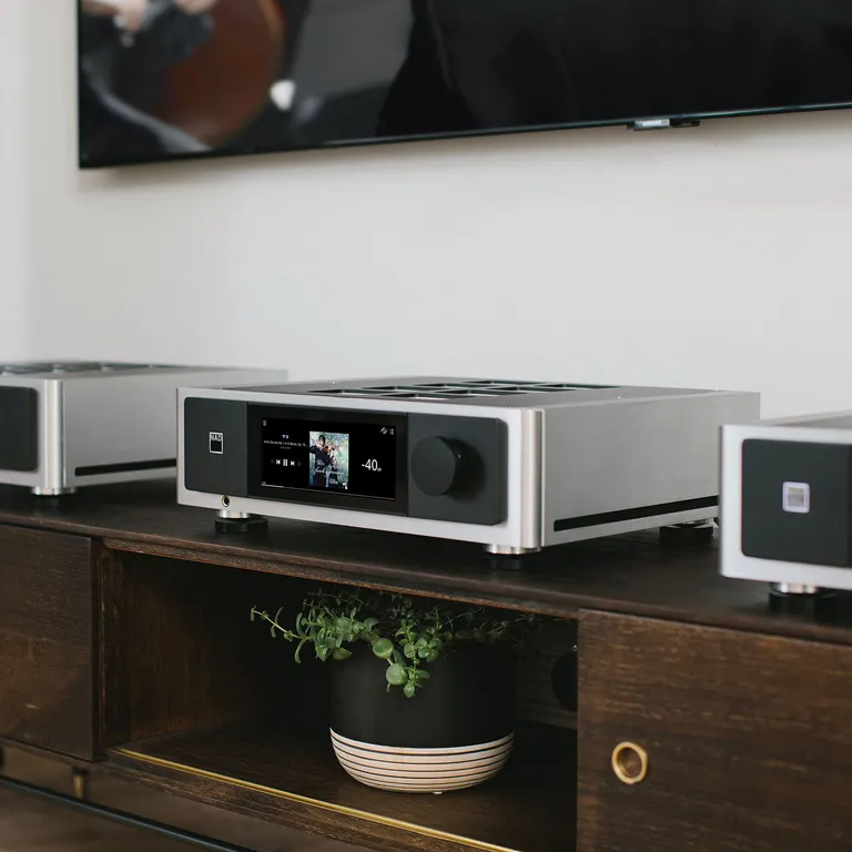 Der NAD M66 hat Bluesound eingebaut, dem am besten klingenden und fortschrittlichsten Multiroom Musiksystem auf dem Markt. Hiermit kannst Du alle Arten von Musik in höchster audiophiler Qualität streamen, und die Bluesound-App gibt Dir einen vollständigen Überblick über Deine gesamte Musiksammlung mit Album-Covern und allen Funktionen direkt unter Deinen Fingerspitzen.