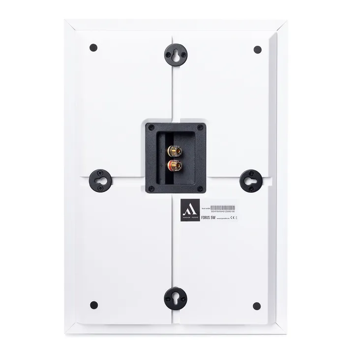 Die Einheiten im FORUS 5 WALL sind von seriöser HiFi-Qualität und der leistungsstarke 5 Zoll Tief-/Mitteltöner wird durch einen hochwertigen Seiden-Softdome-Hochtöner ergänzt, der Deinem Musikerlebnis Luft und Details hinzufügt. Auf der Rückseite des Gehäuses befindet sich die Reflexöffnung und ein Paar hochwertige, vergoldete Schraubklemmen, die für jahrelangen störungsfreien Betrieb sorgen. Dort findet sich ebenso die smarte integrierte Schlüsselloch-Wandhalterung für die vertikale und horizontale Montage.