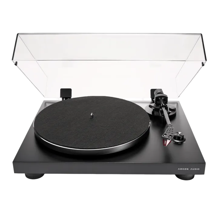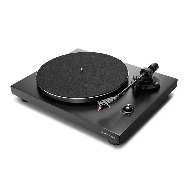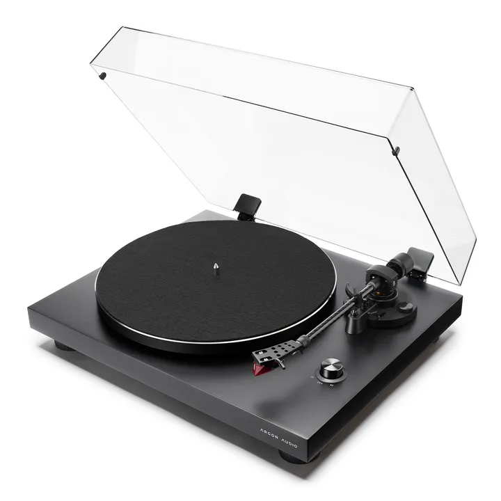 Der Argon Audio TT-3 PLUS ist ein seriöser Hi-Fi-Plattenspieler, der startklar mit einem werkseitig montierten Ortofon 2M-Tonabnehmer und eingebautem RIAA-Verstärker geliefert wird, sodass Du ihn an jede Anlage und aktive Lautsprecher anschließen kannst, auch wenn diese keinen dedizierten Plattenspielereingang haben.