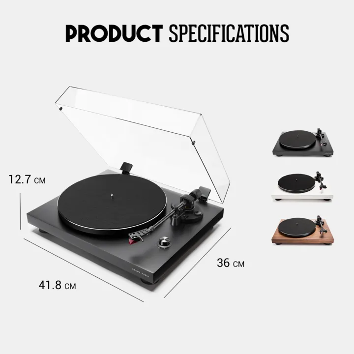 Der Argon Audio TT-3 PLUS ist in Lack- oder Echtholzfurnierausführung erhältlich. Staubschutzhaube und RCA-Kabel sind im Lieferumfang enthalten.