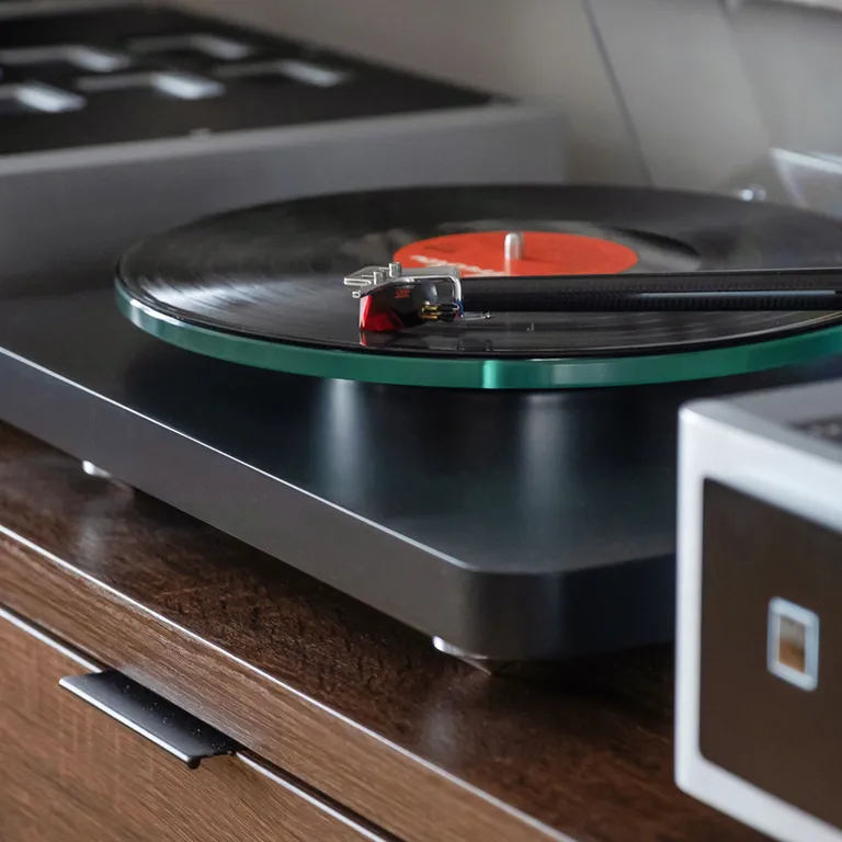 Der gut klingende Ortofon 2M Red Moving Magnet-Tonabnehmer ist ab Werk moniert, sprich gebrauchsfertig. Wenn du magst, kannst du selbstverständlich einen anderen Tonabnehmer deiner Wahl installieren. Tonarm und -masse passen perfekt zu einem MC-Tonabnehmer aus der Quintett-Serie von Ortofon. Das wäre eine ausgezeichnete Wahl, wenn deine audiophilen Ambitionen weiter wachsen.