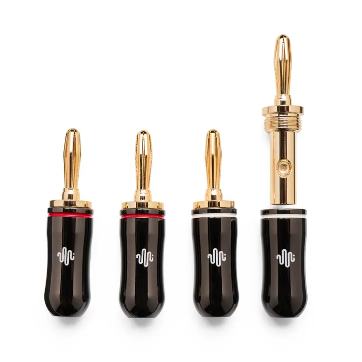 Essentials Prime Banana ist ein exklusiver Bananenstecker für Lautsprecherkabel. Ein Bananenstecker ist eine großartige Lösung, wenn Du ein Lautsprecherkabel an die Klemmen Deiner Anlage oder Deiner Lautsprecher anschließen möchtest. Der Stecker sorgt für einen guten Kontakt, und das Kabel lässt sich leicht wieder abziehen, wenn Du Deine Geräte umstellen möchtest. Der solide Verriegelungsmechanismus der Prime Banana gewährleistet einen optimalen Kontakt zu den Lautsprecher- und Verstärkeranschlüssen, und die Kontaktflächen sind vergoldet, um zu verhindern, dass die Kontakteigenschaften im Laufe der Zeit durch Oxidation beeinträchtigt werden.