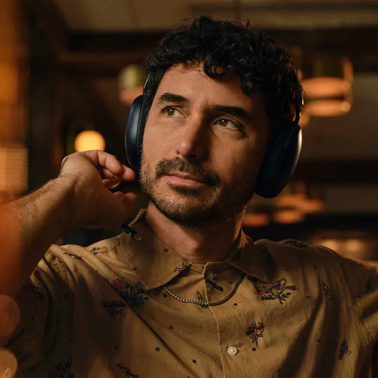 Als nettes Plus kann Sonos Ace kabellos mit zwei Bluetooth-Geräten gleichzeitig verbunden werden (Multipoint), sodass Du schnell von einem Gerät zu einem anderen wechseln kannst, z. B. wenn Dein Telefon klingelt, während Du einen Film auf dem Tablet ansiehst. Ideal, wenn Du im Zug sitzt und keine Lust hast, zwischen Deinen Geräten umzuschalten.
